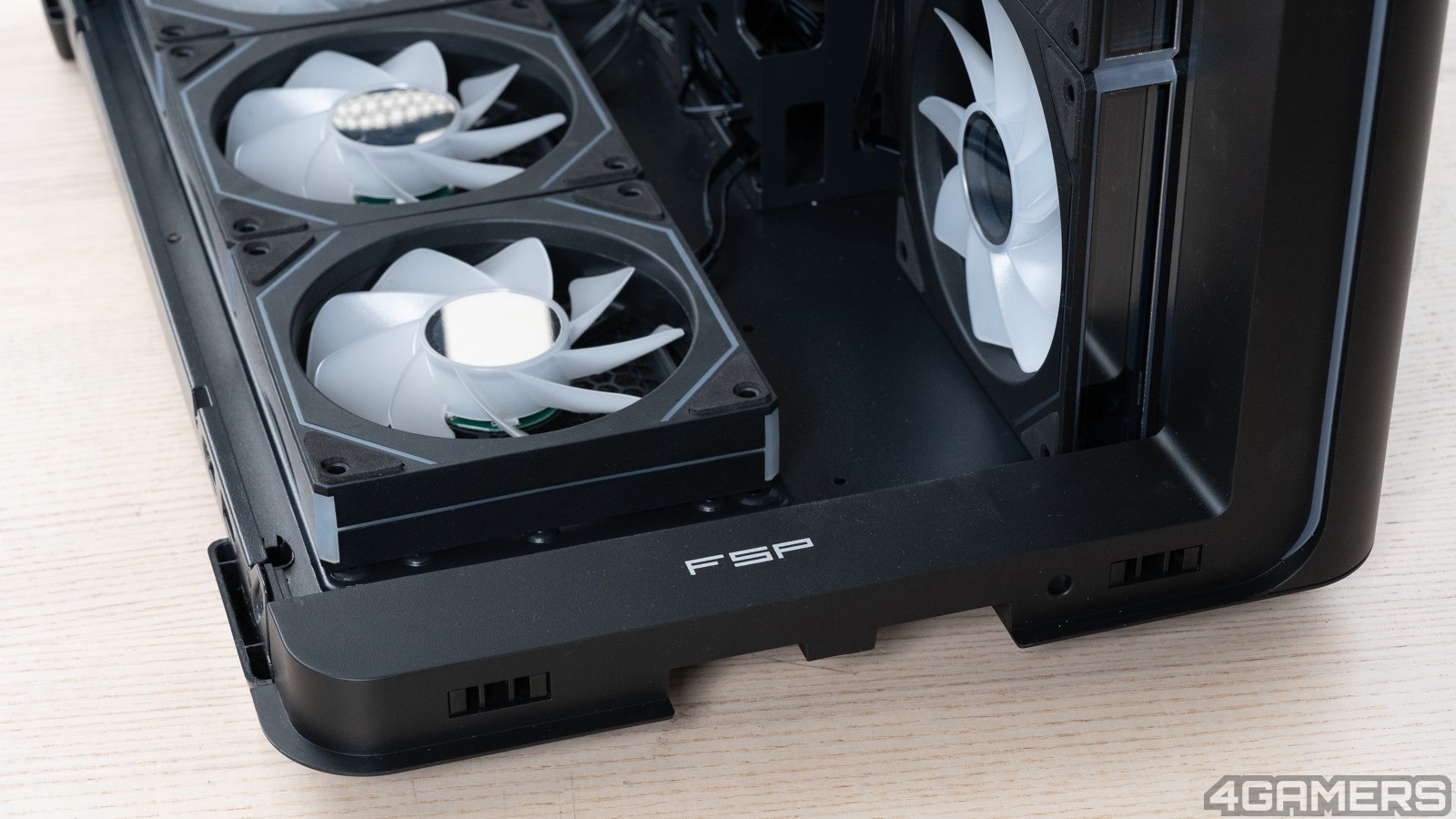 實際組裝來說內部空間非常充足好操作,內部結構也沒有刁鑽難以理解的設計,就算是新手玩家按照說明書組裝也能快速上手,本次組裝搭配了 FSP AE36 RGB 水冷,剛好安裝在頂蓋上,讓整台機殼散熱可以是玩終極體 10 顆 120mm 風扇 的狀態,提供非常優質的散熱效果。